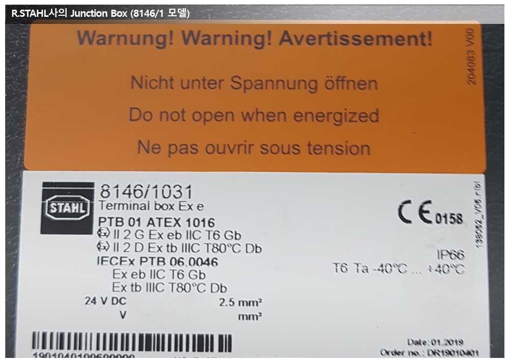공급품목 : 알스탈(R.STAHL)사 Junction Box