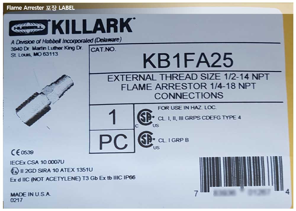 동양피엔에프, IBN SINA POM 프로젝트, Killark사 Flame Arrester 페이지 정보 작성자 관리자 작성일17-03-03 15:29 조회12,689회 댓글0건 관련링크 이전글 다음글 목록 본문 공급품목 : Killark Flame Arrester상세사양 : KB1FA25 모델 댓글목록 등록된 댓글이 없습니다. 이전글 다음글 목록